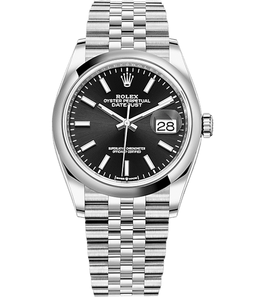 Rolex Perpetual Datejust 36 Watch, Black dial, Domed bezel, 126200-0003